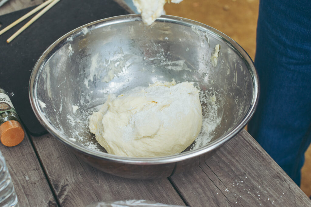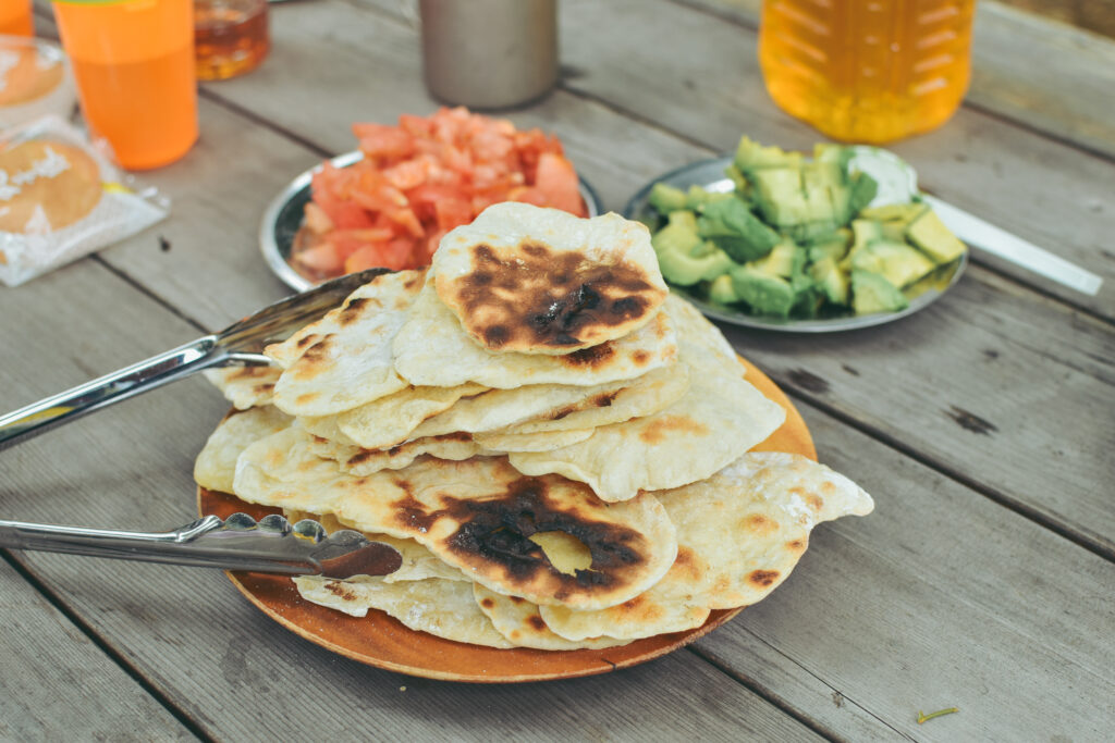 トルティーヤの生地の配分をあーだこーだ調べてみたり、生地を伸ばすための場所がない!となれば、その場にあるテーブルをうまくつかって即席の調理台を即席でつくっちゃう。