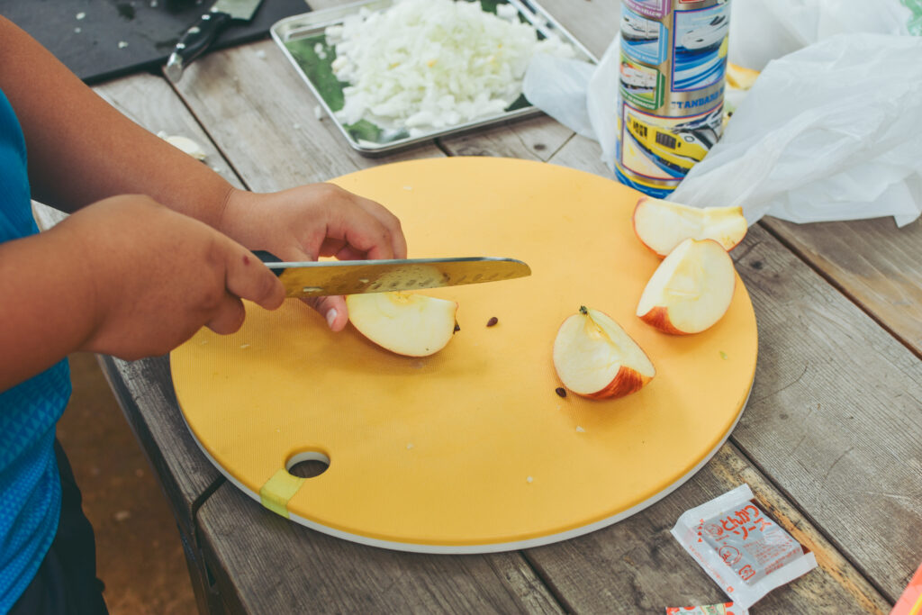 そうそうこの日は、あまり家で包丁を触れる機会がないという少年が、先陣を切って料理長をつとめてくれたのですが、大人たちがその気持ちを受け止め、時々フォローしながらもあたたかく見守っていたのもHELLO TABLEらしい風景でした。