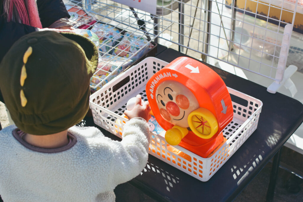 会場内は、駄菓子屋だけでなく、チョコバナナやガラポンクジ、ワークショップにキッチンカーと内容盛りだくさんで、寒い冬の1日だったにも関わらず、夏の縁日に来たかのようなわくわく感。